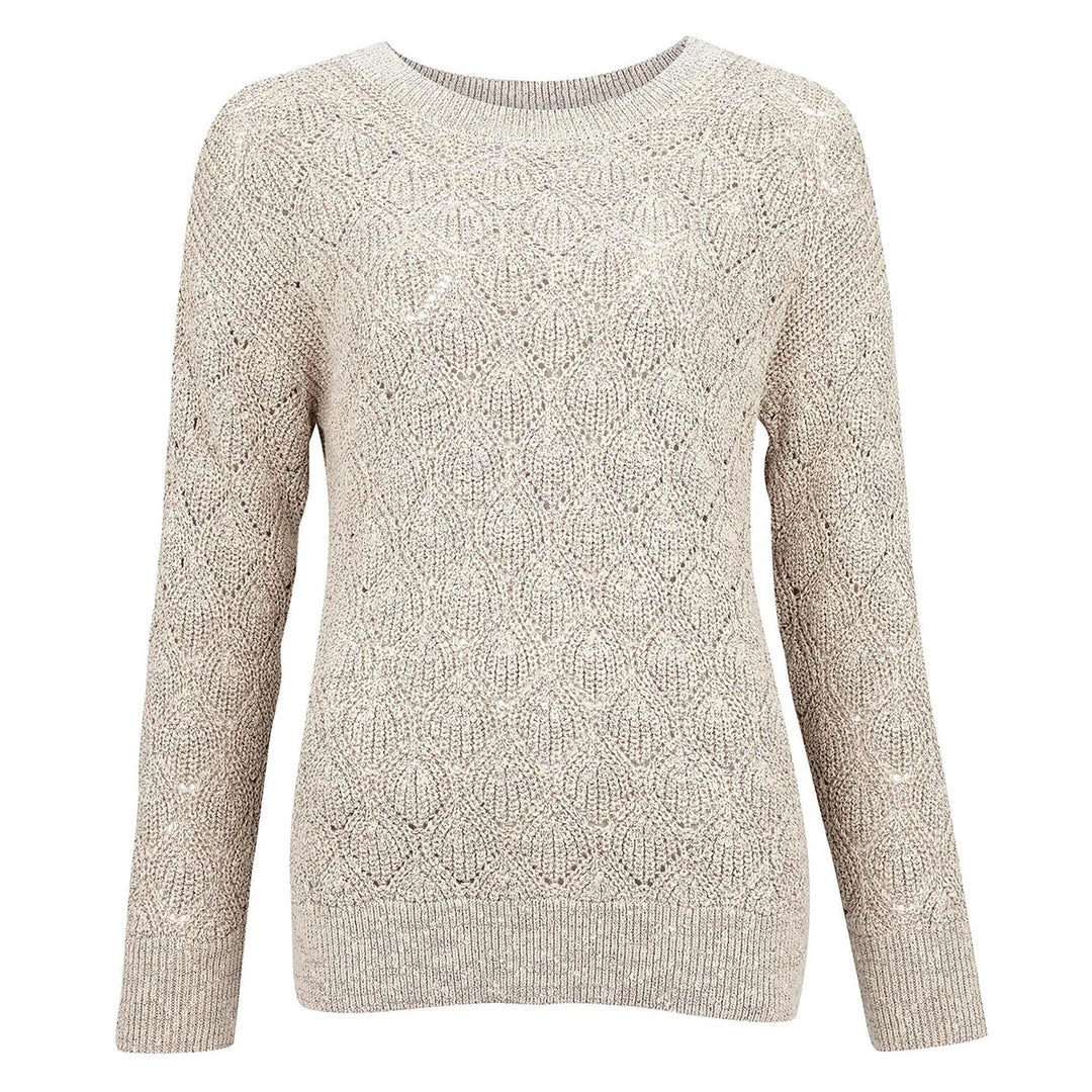A versatile layer for the transitional months, this pretty sweater is knit to a lace pattern for a tactile texture. Styled with ribbing to the neckline, cuffs and hem for the perfect fit, it’s finished with a discreet Barbour logo bar to the back of the neck.