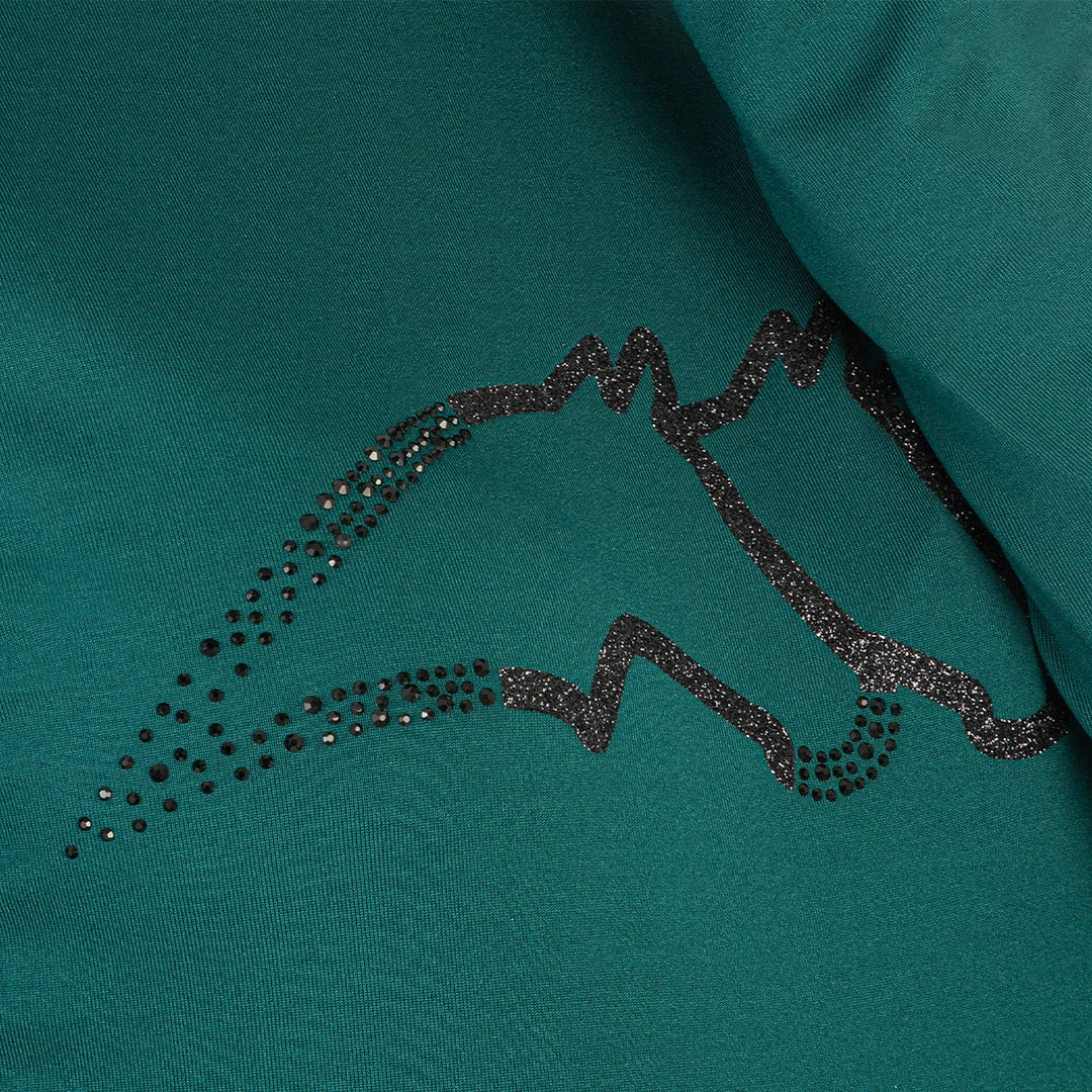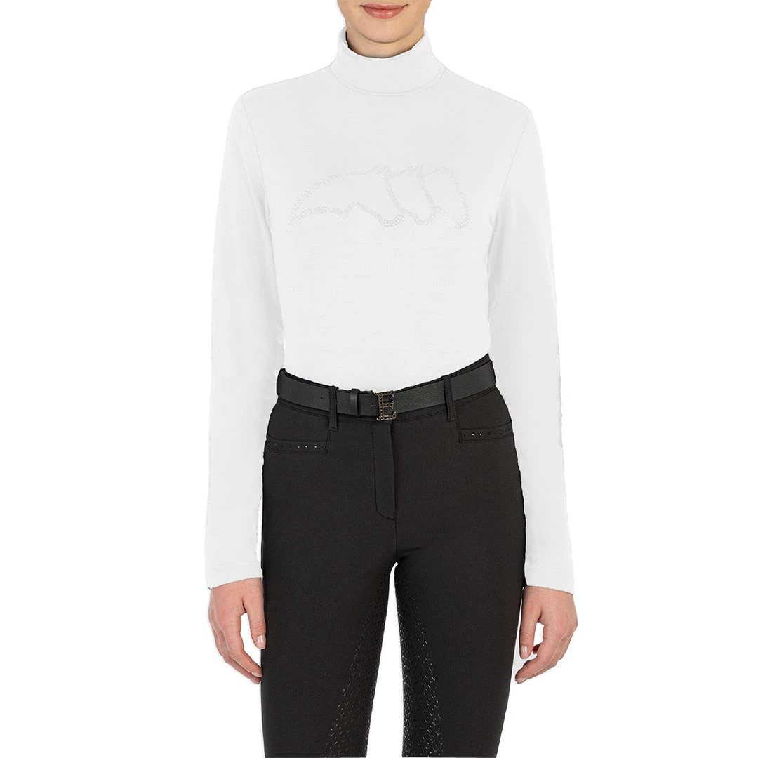 With a mock turtle neck design, the GilaveG is ideal for cool winter days schooling horses around the farm. A great baselayer for underneath your favorite vest, or let it stand on its own and showcase the glitter logo front!