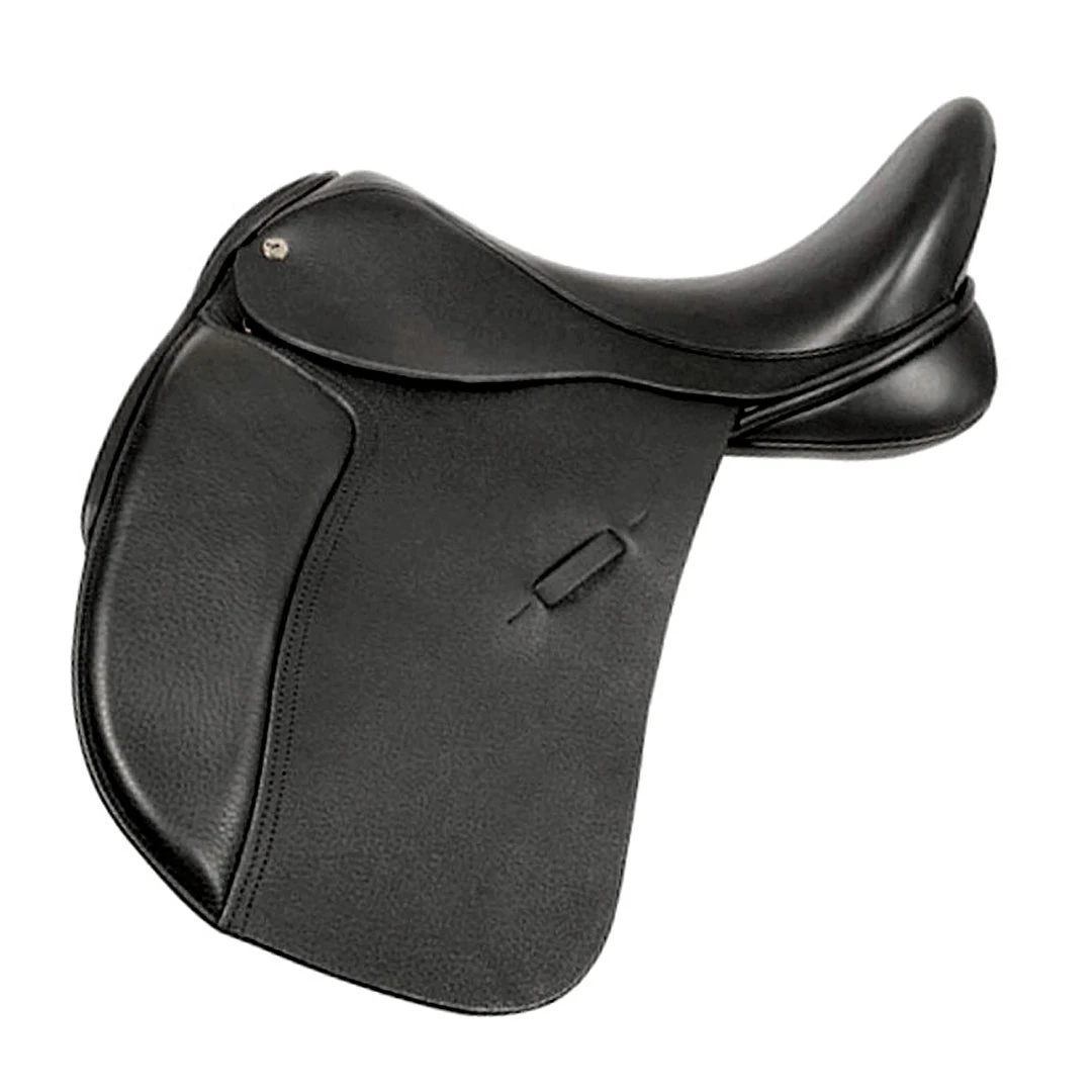 The Eloquence Dressage saddle has proved to be the most popular dressage model in this range at whatever level you are riding. It offers a medium deep seat, giving stability without restriction and an excellent center of balance. Knee rolls are of medium depth but can be custom built if required.  A wide selection of trees and panel options allows us to adapt the fit for all types of horses.