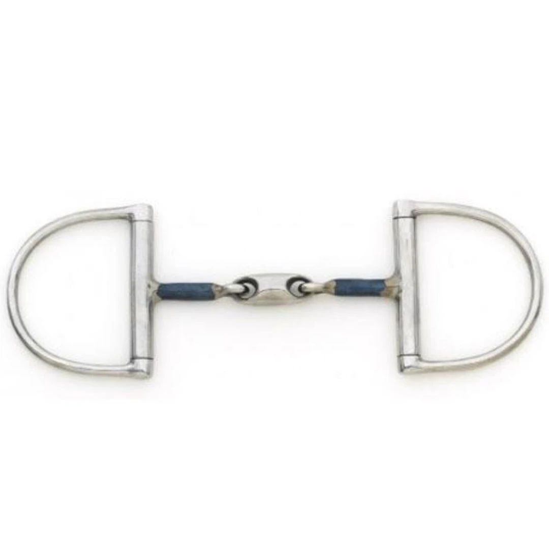 We love this Centaur® Blue Steel Oval Peanut Mouth King Dee Bit because horses love the comfort of this bit. The nutcracker action is reduced and the oval link has less sharp edges than the french link. A milder bit than the french link with lateral control. Â