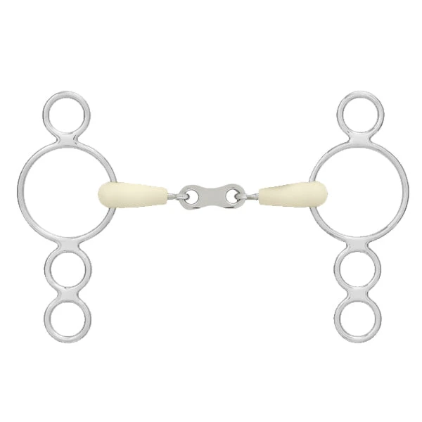 Happy Mouth French Mouth Pessoa 3-Ring Double Jointed. The unique Apple scent encourages horses to accept the bit and the space age polymer provides for a gentler bit for a happier horse.