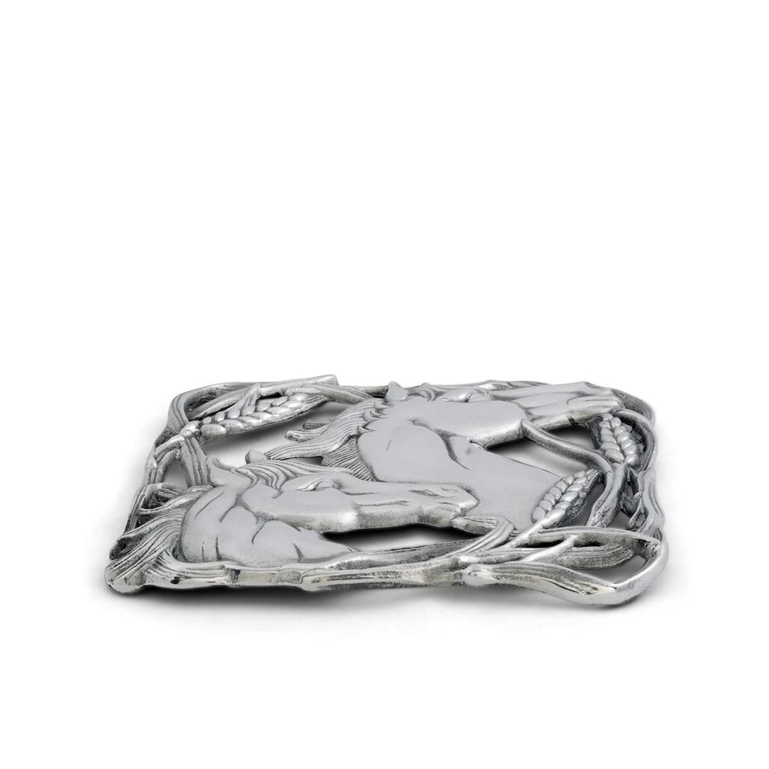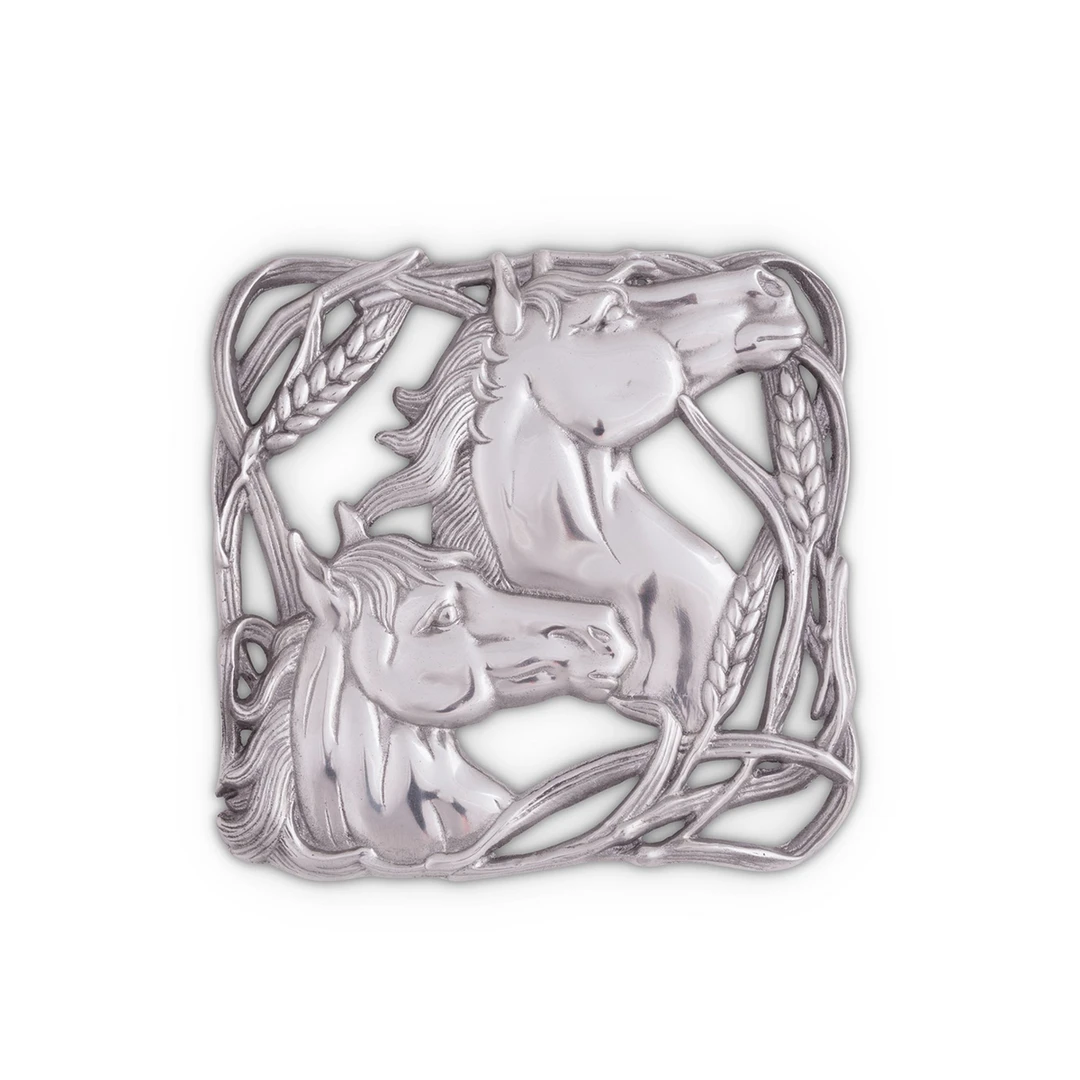 Warm up these creatures and their food as you place yours on this Horse with Wheat Trivet from Arthur Court.