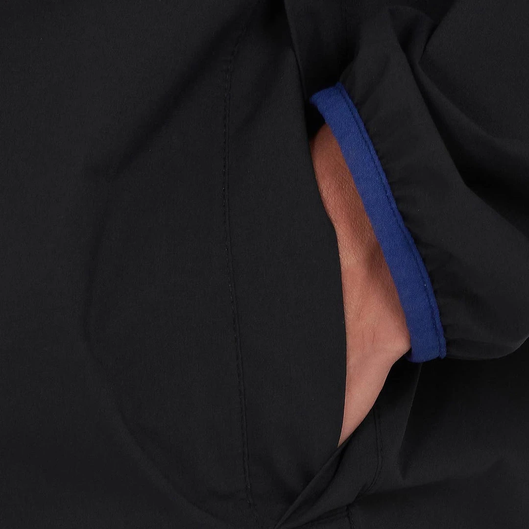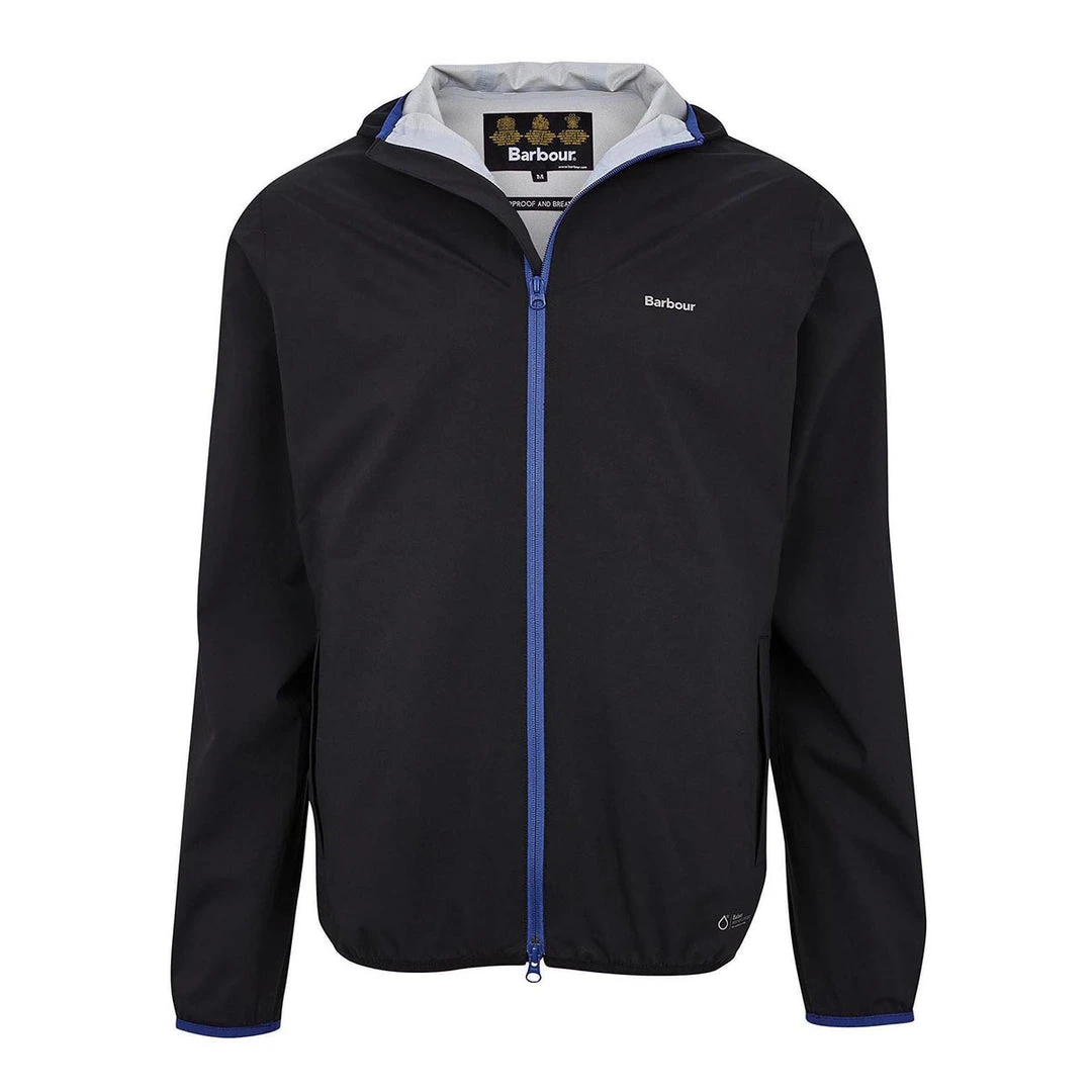 into pocket. Contrast binding to zip, hood and cuffs. Lower welt pockets.