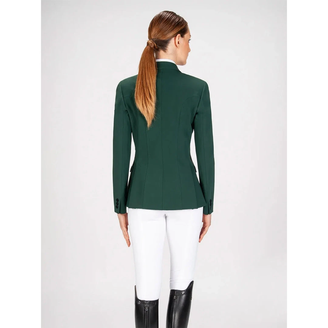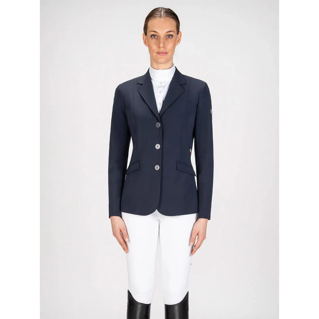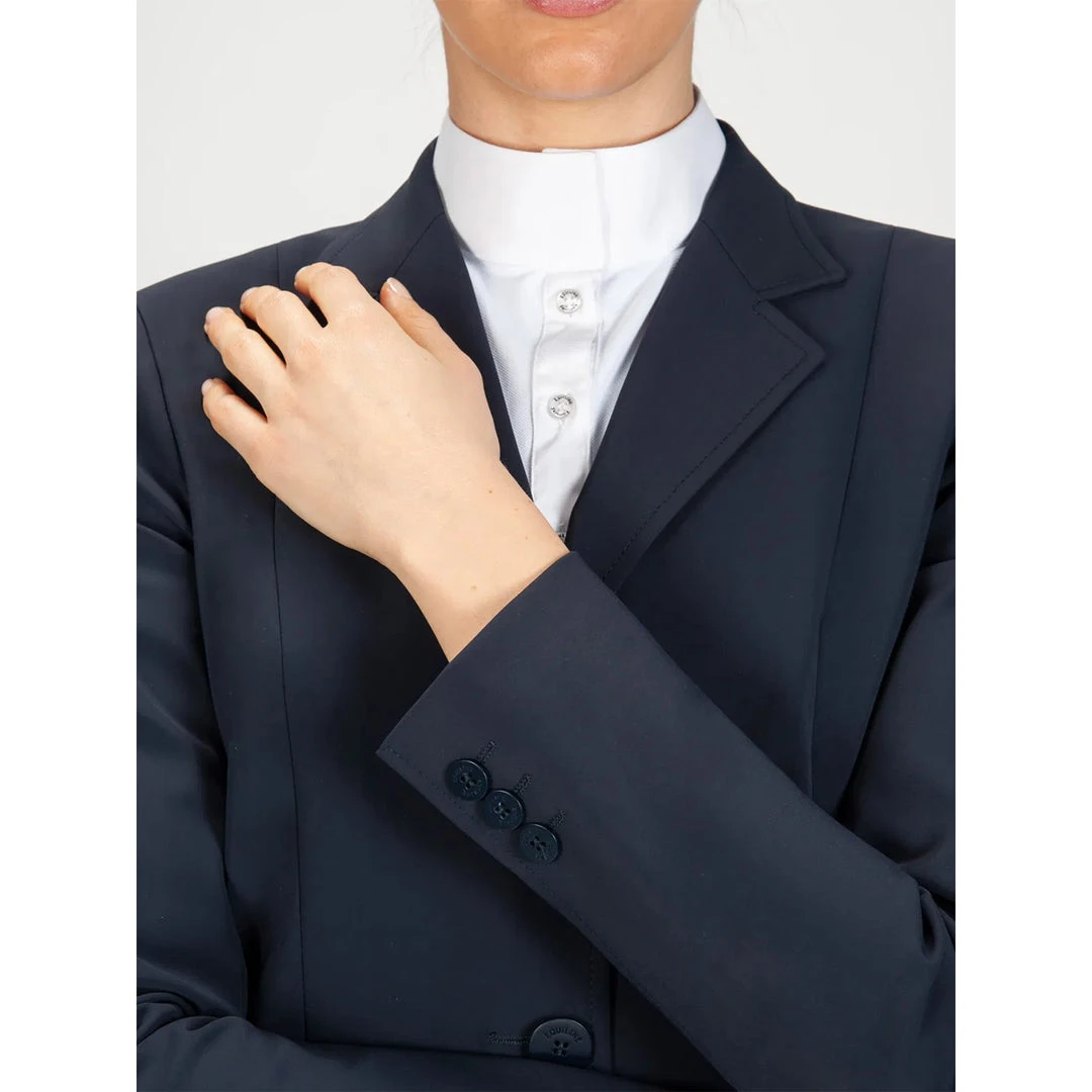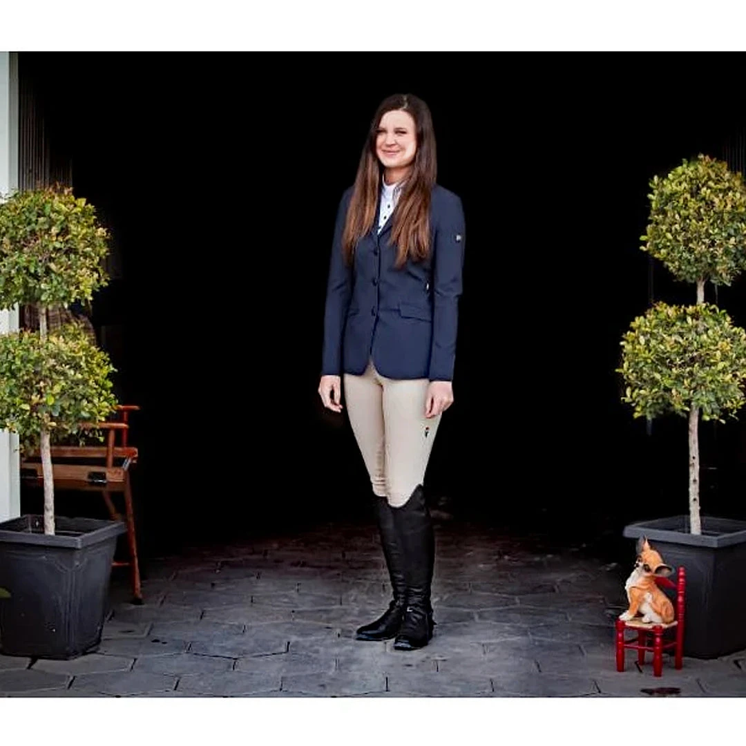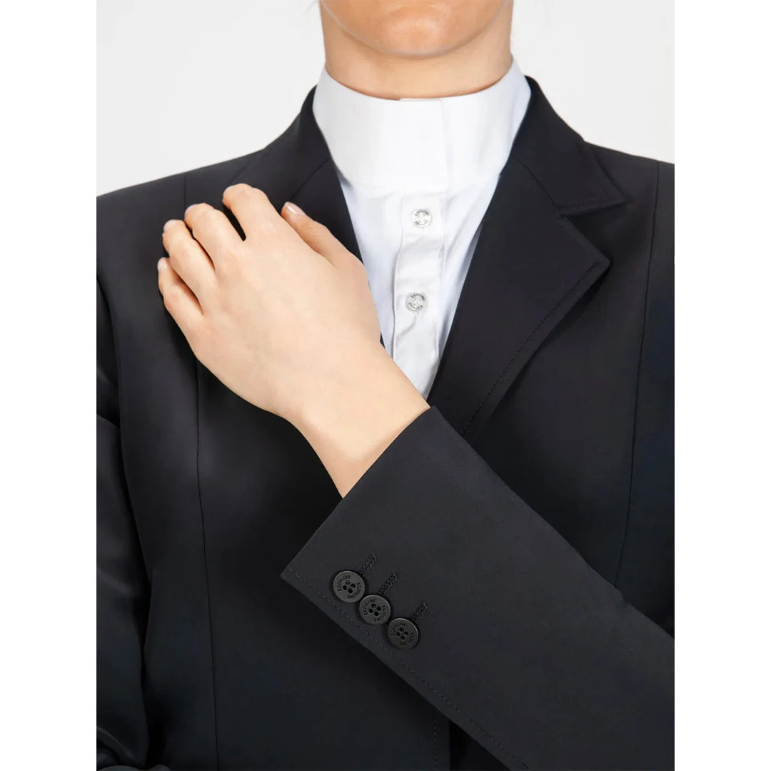 We love the Equiline Women’s Hayley Hunter Show Coat because it is traditionally styled for the Hunter and Equitation show ring. The coat is cut slightly longer than a standard competition jumping jacket and is tailored for a very flattering fit. The coat boasts Equiline’s proprietary X-Cool Evo 4-way stretch fabric, which allows for enhanced breathability and freedom of movement. The lightweight feel makes it ideal for equestrians competing in hot weather climates. Additional features include discreet branding, a double vent in the back, faux flap pockets in the front, and flat matte buttons.