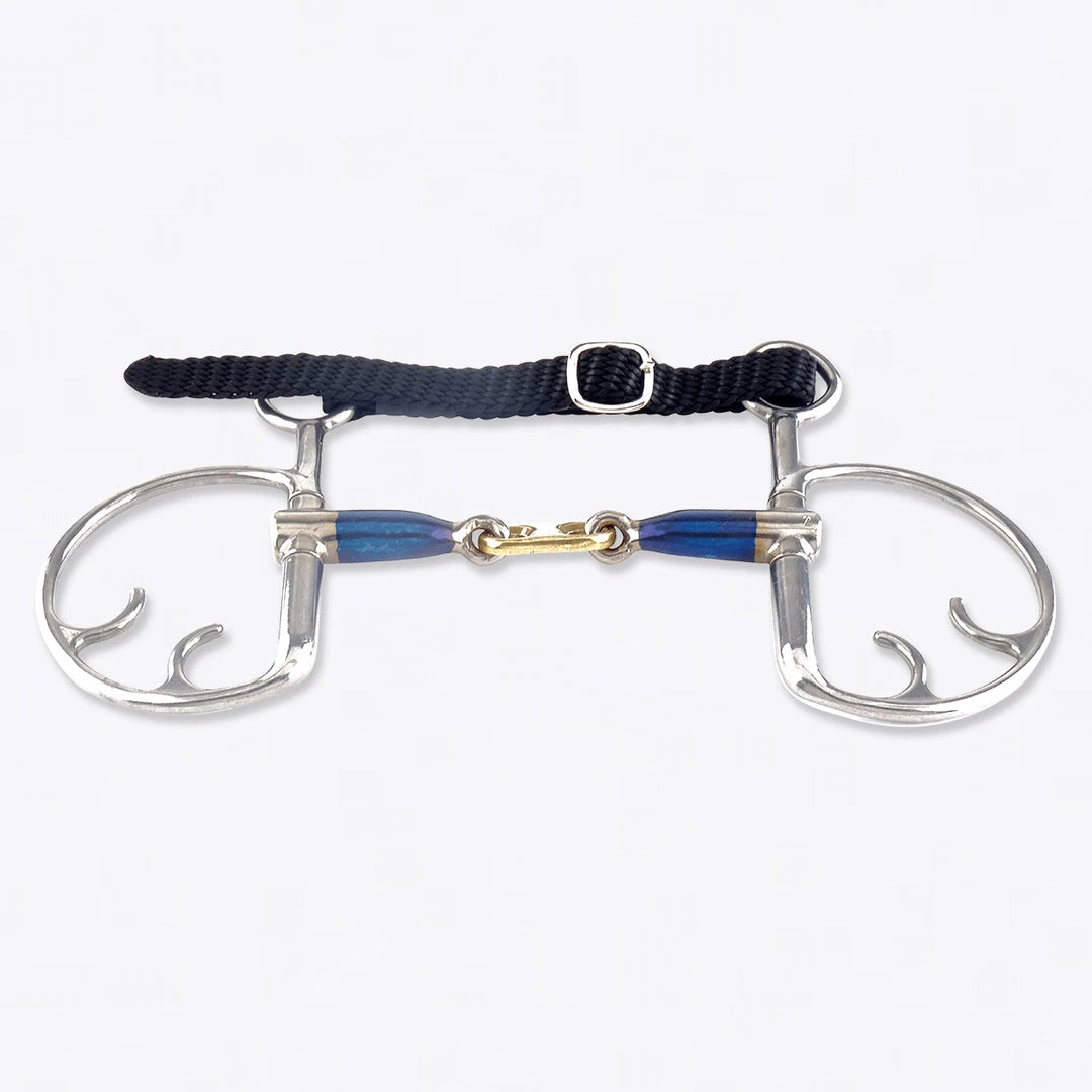 This bit finds its origin in the driving sport but is also popular with show jumpers.  A Kimblehook is a bit that belongs to the category of the Pelhams, but only one rein is used. The effect of a Kimhook is softer than a pelham. The lower the rein is placed, the sharper this bit will be.  The effect is bigger when used in combination with a curb chain.
