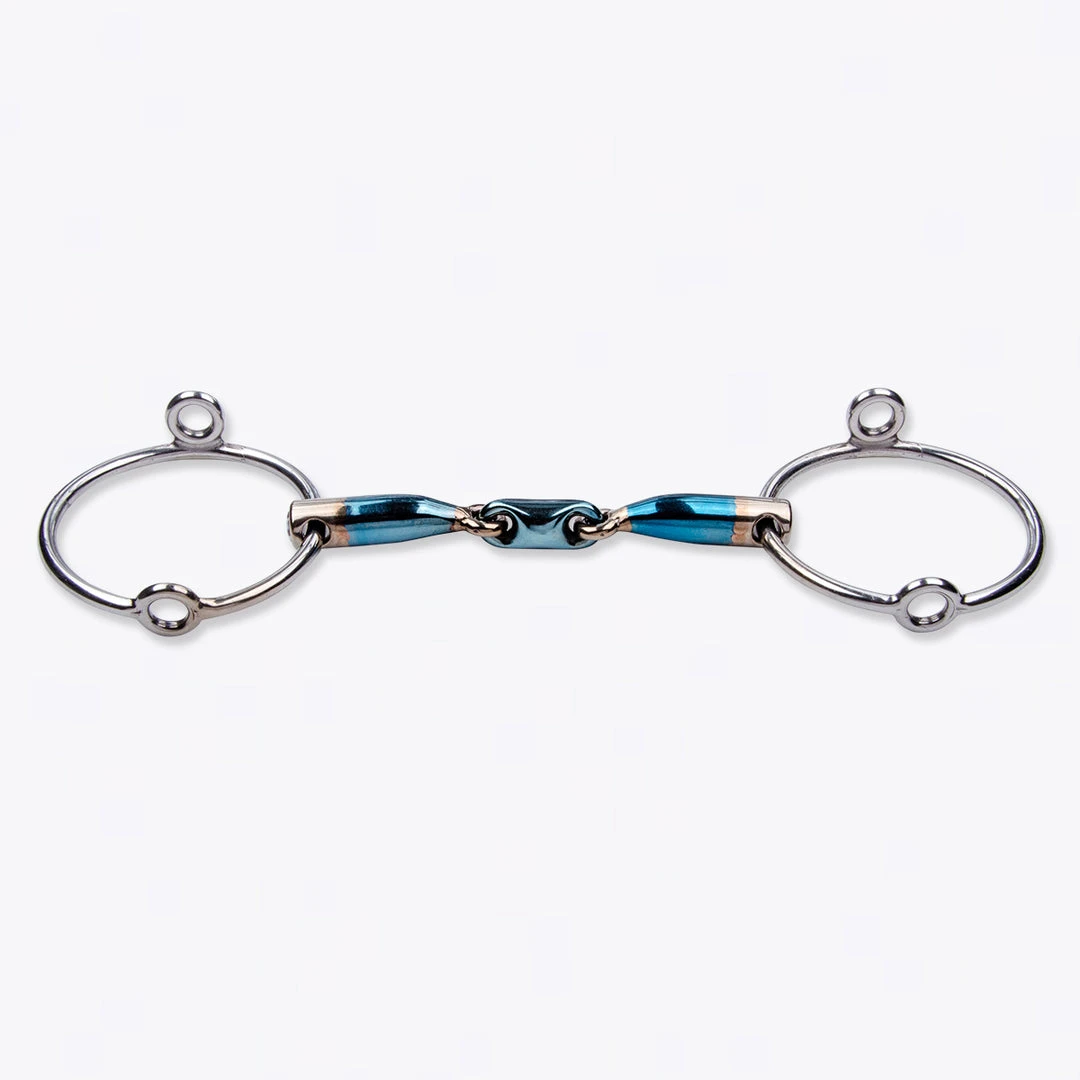 The loose ring gag stimulates the horse to bring its head up. It is often used with horses that run behind the bit and don’t follow the hand as much as necessary. The bit can be used with one or two reins or with pelham straps. In most cases, the bit is used with two reins, one is normally attached to the bit and the other rein to the end of the gag straps.Â
