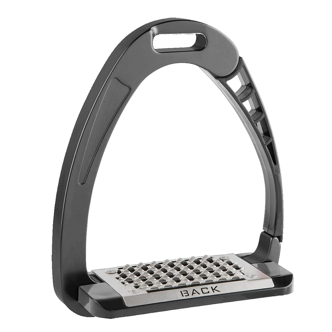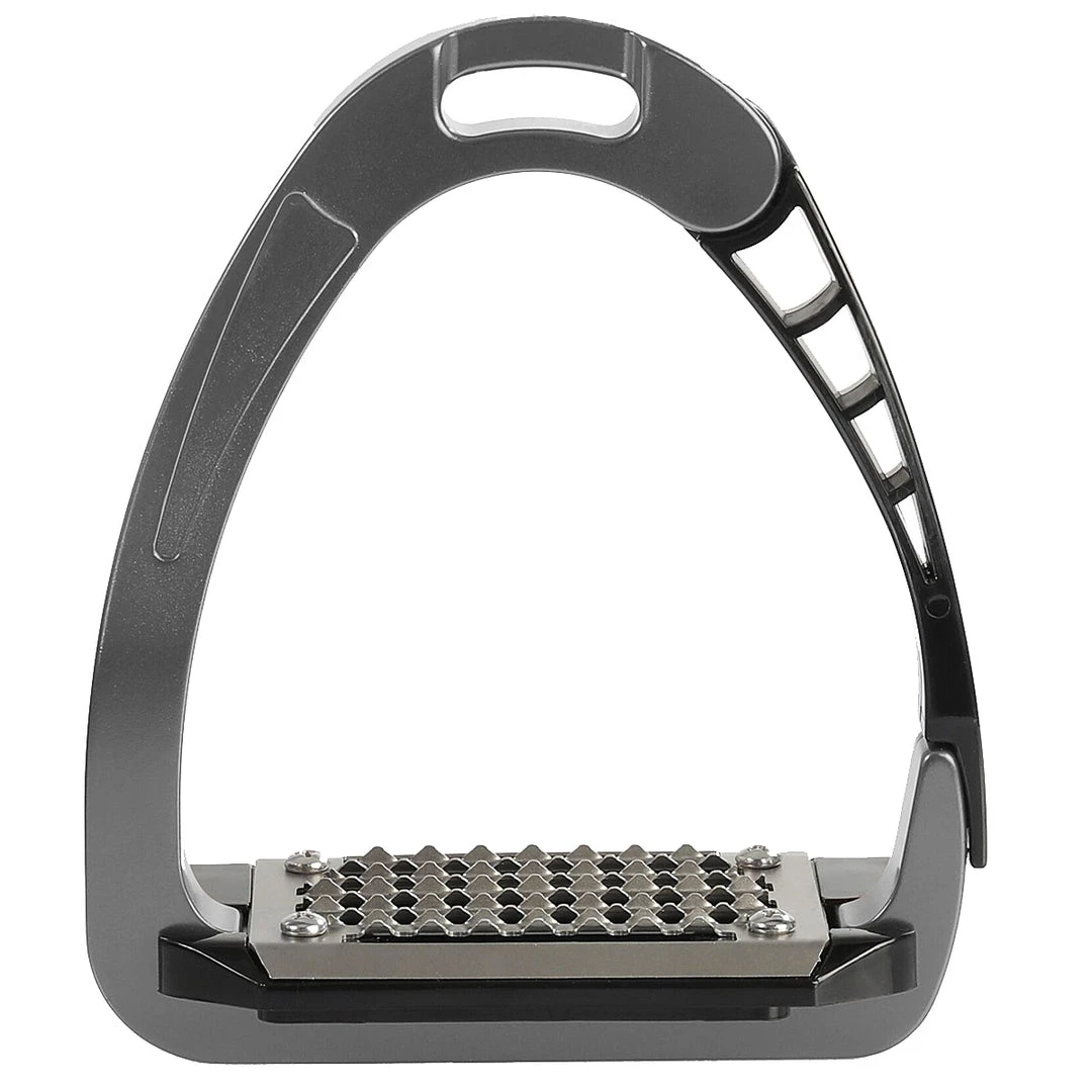 The stirrup bow is made of aluminum, while the opening arm is made of special polyamide material. The stirrup pad is also made of polyamide, and the tread is fabricated from stainless steel. The AluPro model, in principle, provides the same safety function as the Arena HiFlex but it is based on different materials.