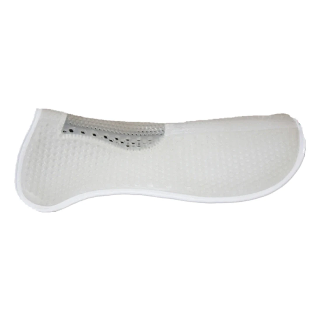 Hexagonal gel structure gel pad combined with micropile fabric and a inner “open cell foam” lining provides confort to the horse’s back while maintaining contact with the saddle.