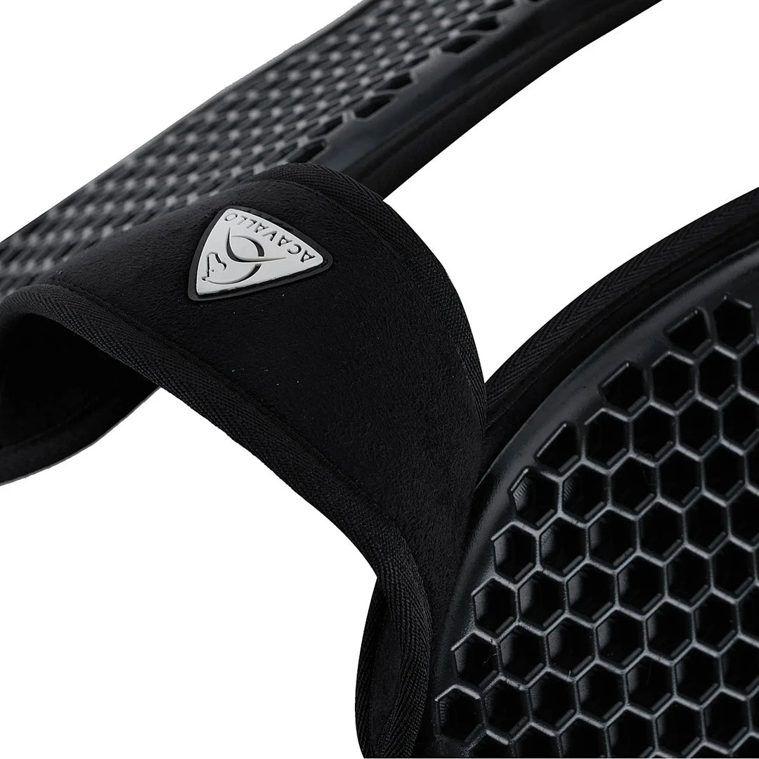 It does not compress the withers and helps to prevent problems by distributing weight evenly. Anti-slip, shock-absorbing hexagonal gel pad combined with micropile fabric and an inner 4 mm thick open cell foam is breathable, providing comfort to the horse’s back while maintaining contact with the saddle.