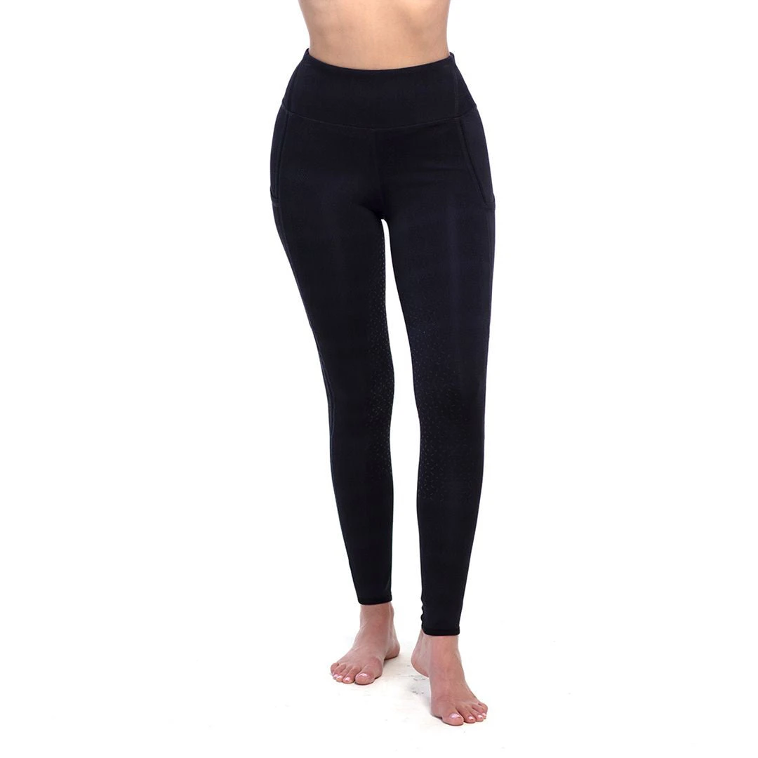 These tights are perfect for any athletics, from the saddle to the yoga studio to biking or running. Beautifully placed seams for a stunning flattering fit, with a pretty vented mesh elastic band at side seam. Side pockets to stash your phone and belongings. Silicone on Full Seat for absolute best grip. This is the latest and greatest in innovation and technology. You won’t take them off.