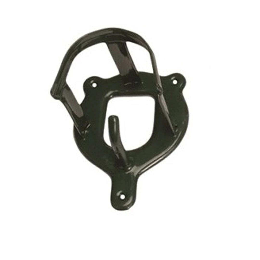 This sturdy, vinyl-coated, steel bridle bracket is designed with a built-in rein hook. Screws included for easy mounting.