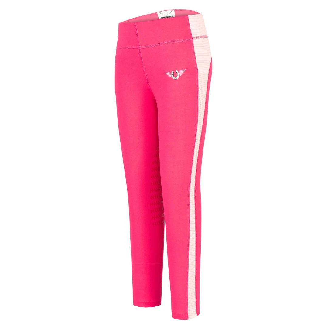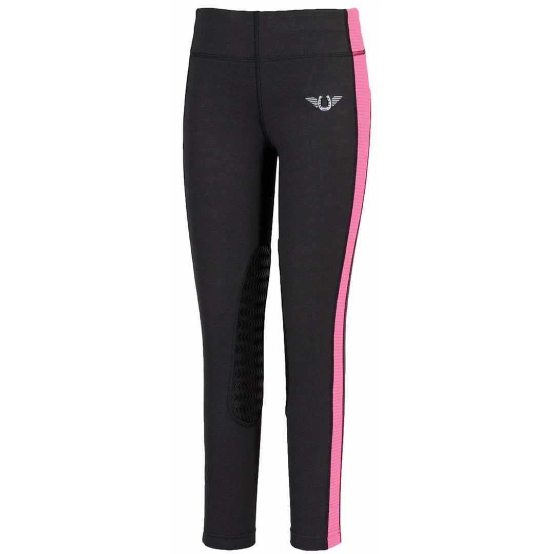 TuffRider Children’s Ventilated Schooling Riding Tights are made from technical fabric that wicks away moisture to keep the rider cool and dry. Additional features include a trendy lowrise waist, as well as grippy silicone knee patches for a secure fit in the saddle. Best of all, these riding tights are made with ventilated side strips that go down the leg for superior airflow. We carry these fashionable pull-on tights in a variety of vivid color options.