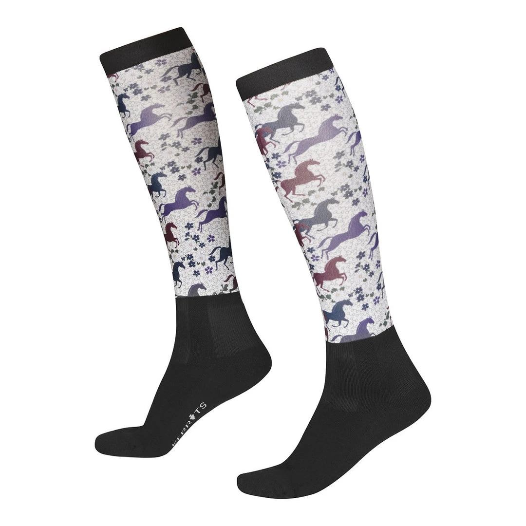 We love these cozy Dual Zone Boot Socks to keep your toes warm in your tall boots. Perfect weight for warmth yet, thin enough to fit nice & smoothly into your boots. The fun designs are also perfect for wearing with paddock boots or clogs. Show off your style in these fun fabric socks. You’ll receive style merits, when you wear Kerrits. Â