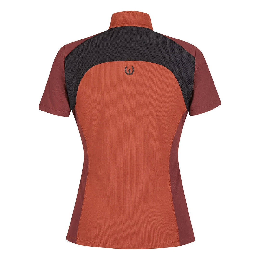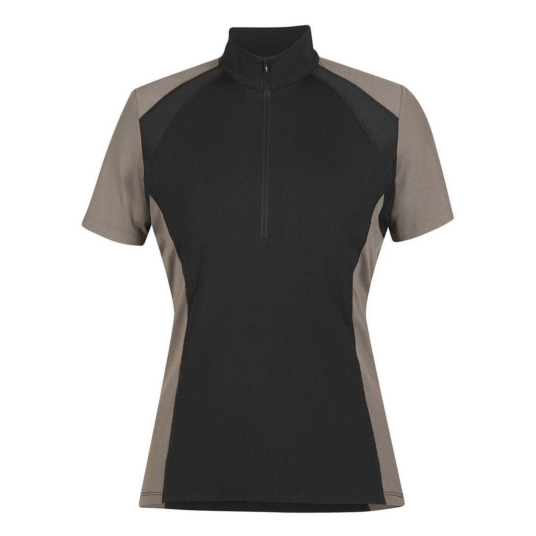 The mini-ribbed fabric in this super-sporty top wicks, breathes and flatters with a slight compression that’s perfect for the bodyskimming fit. Shorter, seven-inch sleeves, quarter zip and mesh panel across the back keep riders cool, while princess seams and contrast sides create an athletic, feminine silhouette. Match with Free Style Pocket Tights for a fun, coordinated look.