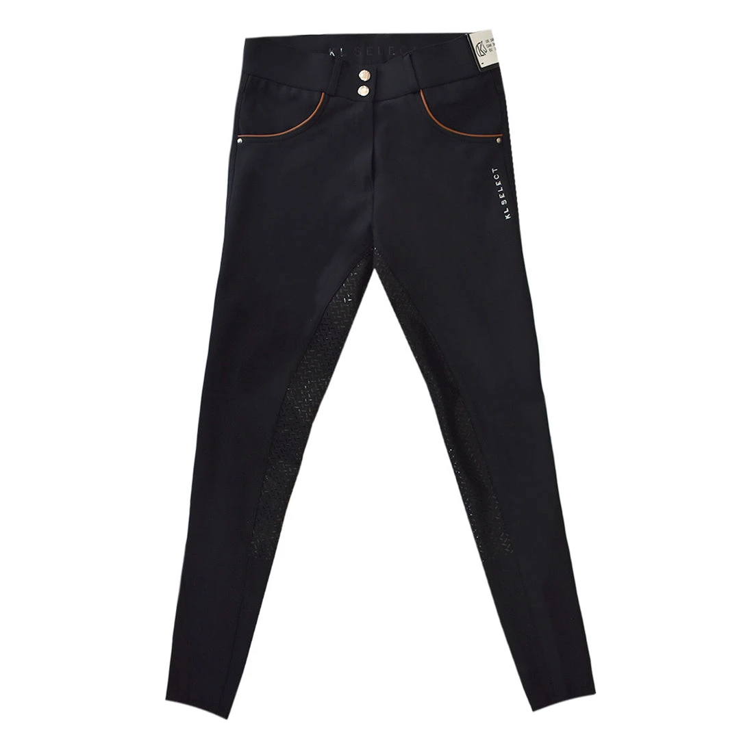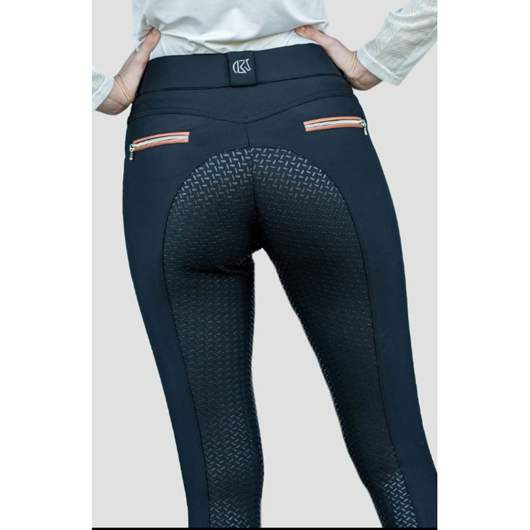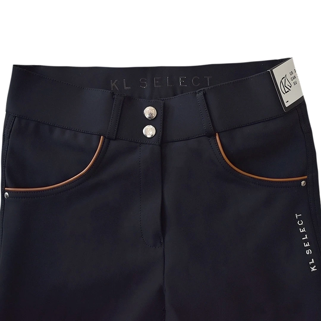 With their subtle sophisticated details and high-tech compression fabric, the KL Select Gabrielle Breech is destined to be your new favorite. The new Gabrielle Breech features high-tech compression fabric with 4-way stretch for optimal movability and a sleek figure-flattering look! The mid-weight material offers breathability, moisture absorption, and fast-drying. Gabrielle’s features include two front slide-in pockets accented by silver grommets, two decorative back zipper pockets, contrasting piping, a silicone full seat, and Lycra sock bottoms.