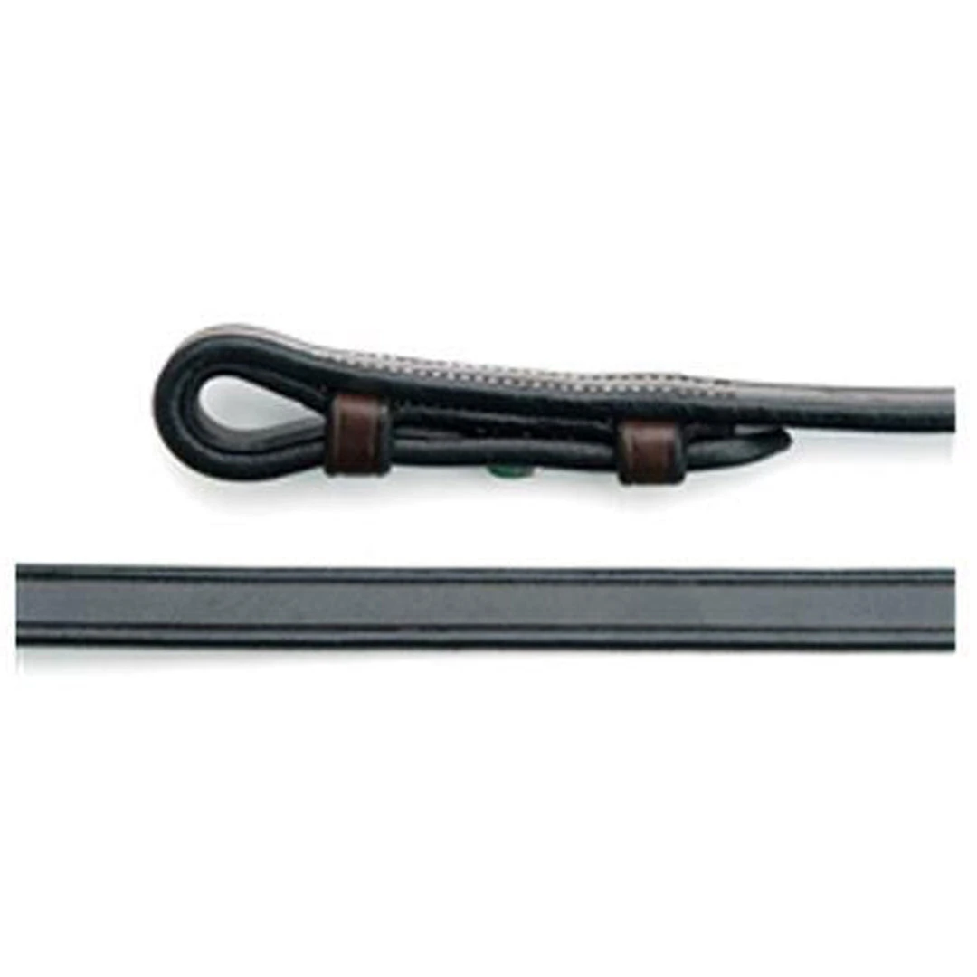 Beautifully crafted from Italian leather and features hook end studs. these reins are 1/2″ and are perfect to be used as a pelham rein. Nice enough for the show ring yet durable enough for everyday use.