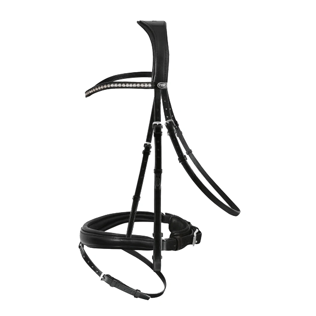 The Atlas bridle not only looks particularly good, but it also sets new standards in horse-friendliness. The headpiece and the noseband are special, the locking strap is anatomically shaped and softly padded. As a result, it lies particularly comfortably on the horse’s head and ensures optimal pressure relief. The curved browband with large premium clear crystal sparkles beautifully.  Crafted with the finest Passier bridle leather.
