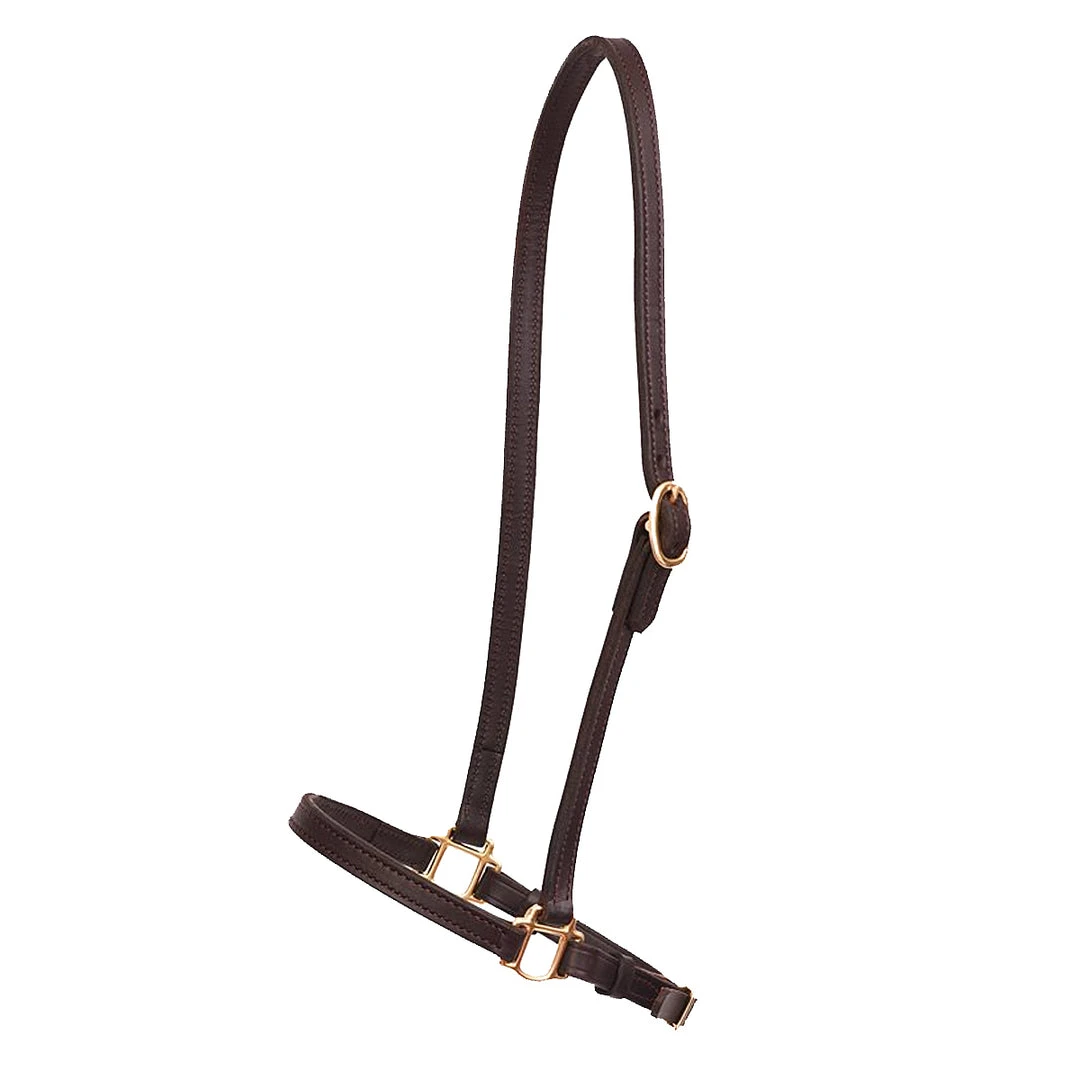 Double stitched, 3/4″ leather grooming halter with brass hardware. Â