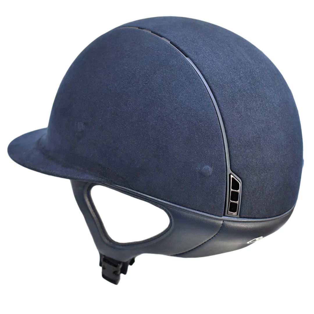 The Samshield Miss Shield Premium Alcantara Top Helmet offers a matching Alcantara top material with a stylish frontal band above the visor. The extended visor is now longer and wider to help with protection from the sun. This new helmet combines the comfort, style, and safety that all Samshield helmets offer into one beautiful equestrian riding helmet. This modern helmet has a streamlined look and a beautiful Alcantara top. The fabric will not fade in the sun and is water-resistant.