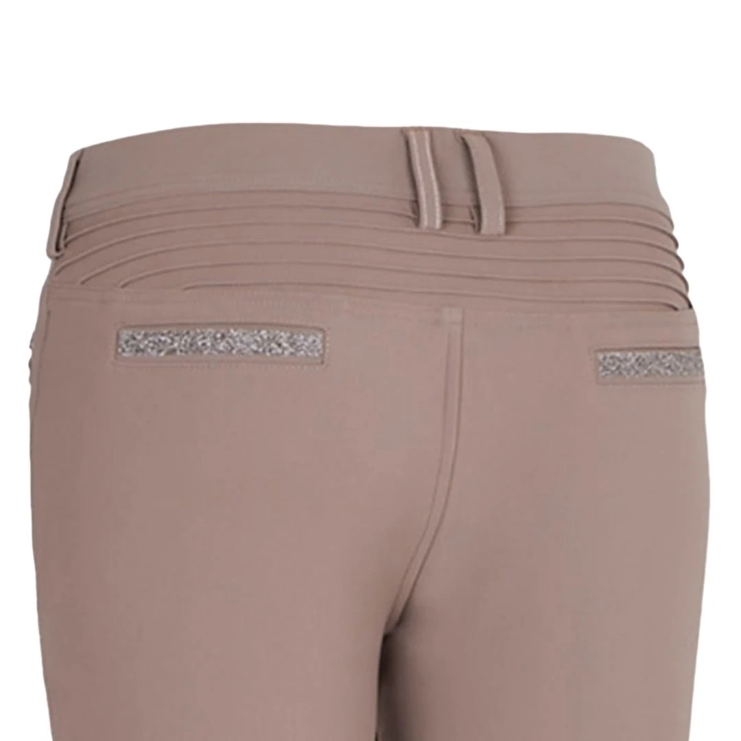 The Adèle breeches provide comfort and technical performance. The tailored design, using wearability-resistant high stretch fabric along with the pleats on the back ensure a perfect fit for the rider. The Adèle breeches offer a second skin effect and guarantee high breathability for optimal comfort. The elasticated fabric provides wind and ultraviolet rays protection. The silicone knee grip ensures stability and adherence in the saddle.