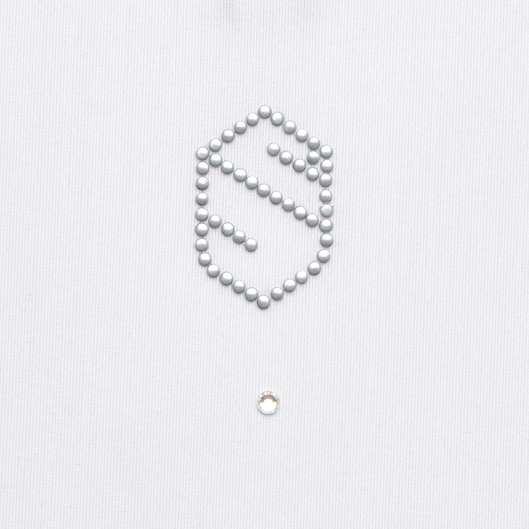 The Juliette shirt is made from a stretch material that is soft to the touch, highly breathable and very comfortable to wear. The fitted cut provides good support and a perfect fit. The anti-UV treatment protects the skin from ultraviolet rays. The gathered collar of the Juliette polo shirt closes with a press stud and the buttonhole adorned with tone-on-tone embroidery with fabric-covered buttons. The Metal Dots blazon on the back adds sophistication to this elegant and feminine shirt.