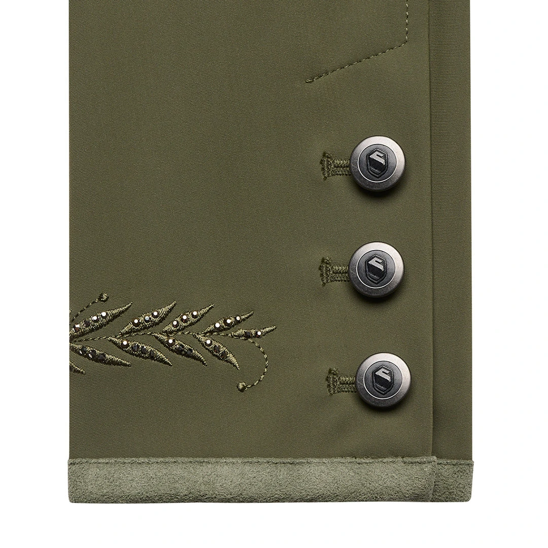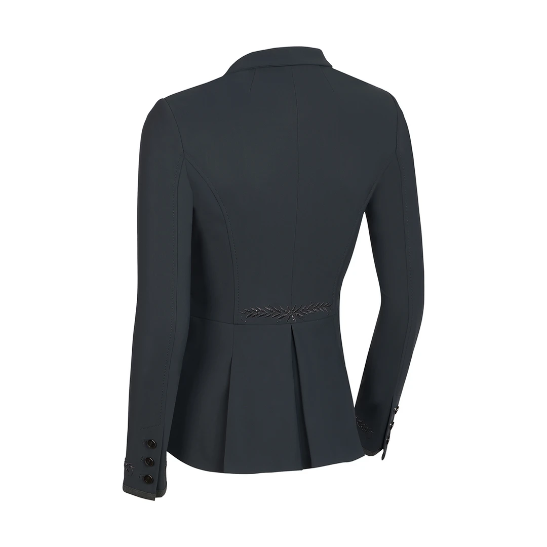 The Victorine Embroidery competition jacket is designed to provide comfort and technical performance to riders. The tailored fit and asymmetrical cut (front is cut shorter than the back) ensures a perfect fit, elegance and comfort.