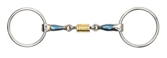 The loose ring cheek has greater movement than a fixed ring cheek, allowing it to follow the angle of the tongue, which can discourage fixing and leaning. The loose brass alloy discs in the center can help to soothe a fussy-tongued horse.Â