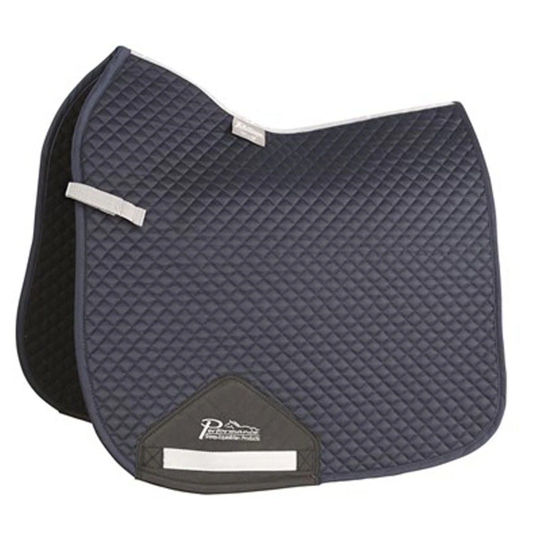 Stand out with the Performance Dressage Saddle Pads, smart enough for competing or everyday use. WickAway stay dry lining actively transfers moisture away from the skin. Vibrant color range. Hardwearing girth guard. Elasticated D-ring straps for convenient security. Contoured shape for good clearance.