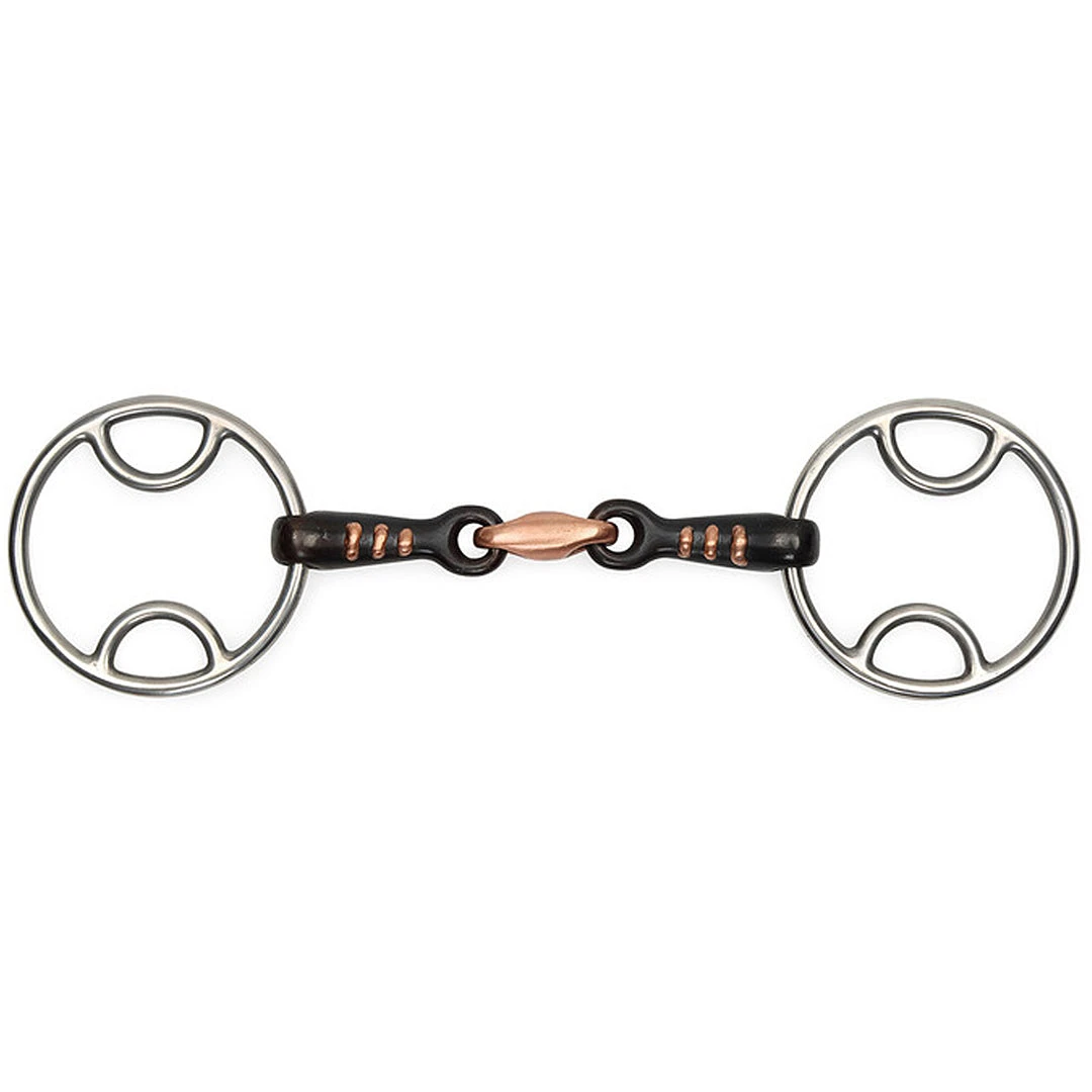 The Shires Sweet Iron Bevel Bit encourages salivation and produces a pleasant taste in the horse’s mouth. The copper lozenge adds warmth. Raised copper ribs can help prevent the horse from taking too much of a hold.