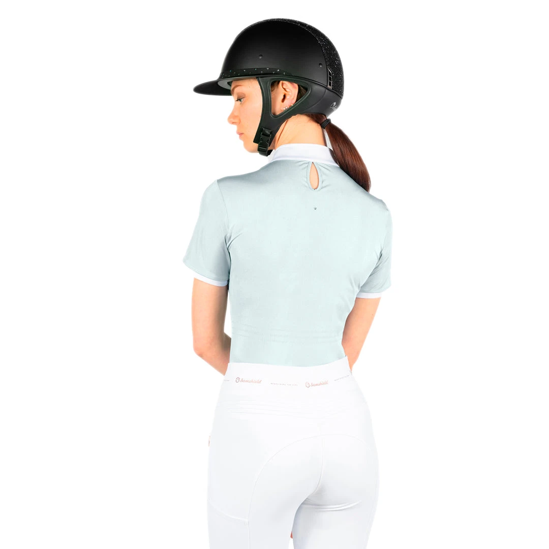 The Apollina short sleeve polo shirt is made of soft touch, highly breathable and lightweight stretch material and is very comfortable to wear. The slim fit provides excellent support and a perfect fit. The anti-UV treatment protects the skin from ultraviolet rays. The polo shirt is recognizable by its white front panel, its collar closes with invisible snaps and zip when closed. The details of the Apollina polo shirt such as the Samshield crest in Swarovski® crystals on the collar and the iridescent stripes make the Apollina a feminine, elegant and refined shirt.