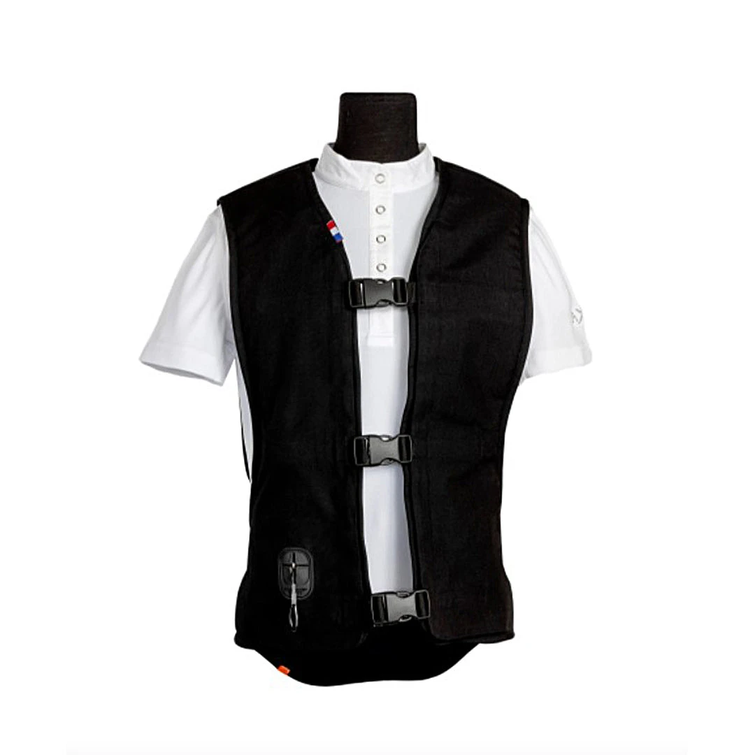 The airbag deploys in case of a fall when the rider is ejected from the horse. The deployment speed is 80 milliseconds. This airbag vest is designed in France and has a 5 year warranty.