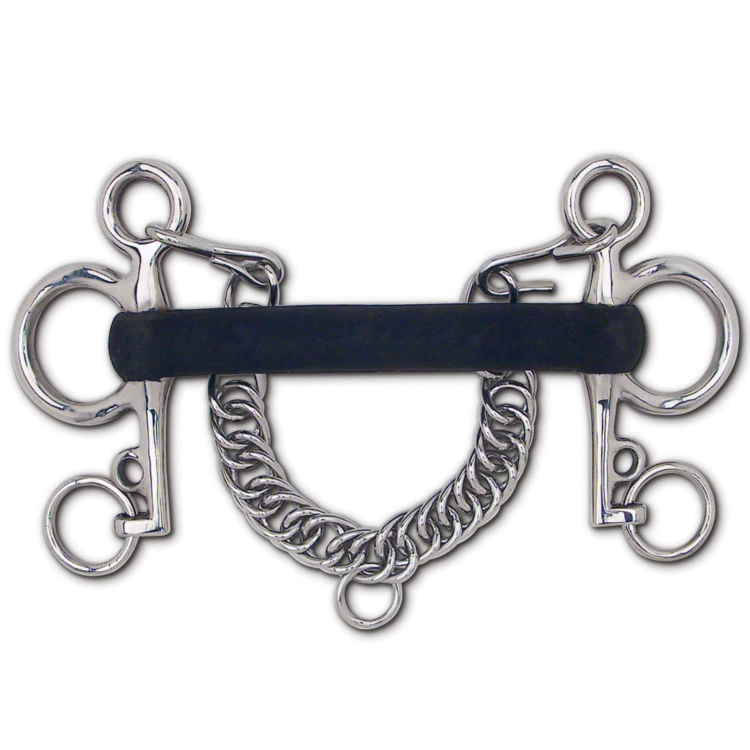 This bit is perfect for the horse who pulls a little but has a very sensitive mouth. The leverage action will discourage the horse from leaning or pulling on the rider’s hands, while the snaffle mouth encourages the horse to move forward into the bridle.Â