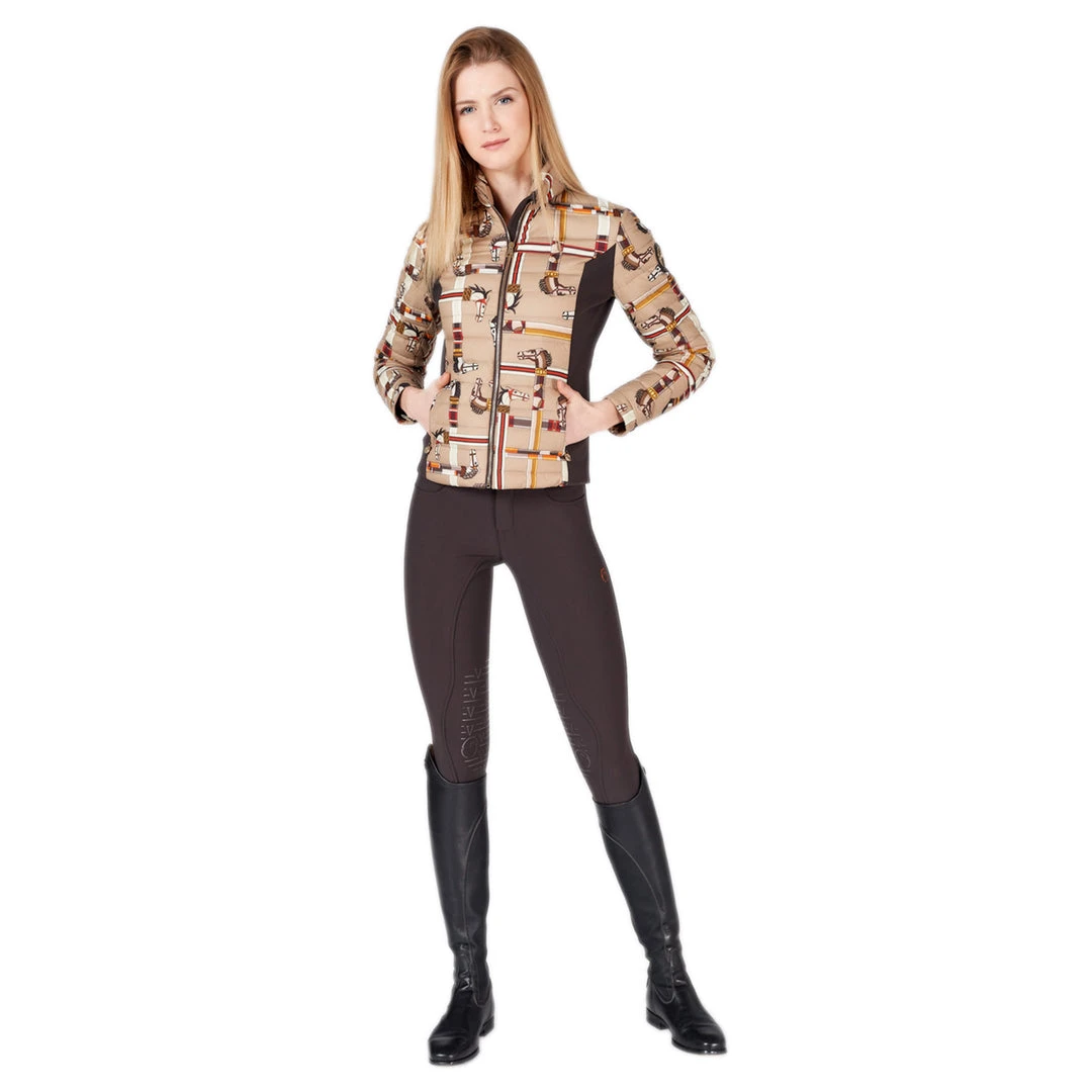 Mascate light printed jacket is an extremely elegant jacket made with an exclusive equestrian design. The perfect shell for the stable or dinner. Lightweight enough for layering or warm enough to be worn on its own. Bi-stretch fabric on side and back part of the arm, frontal metal zip as closure. Logo patch on the left shoulder.