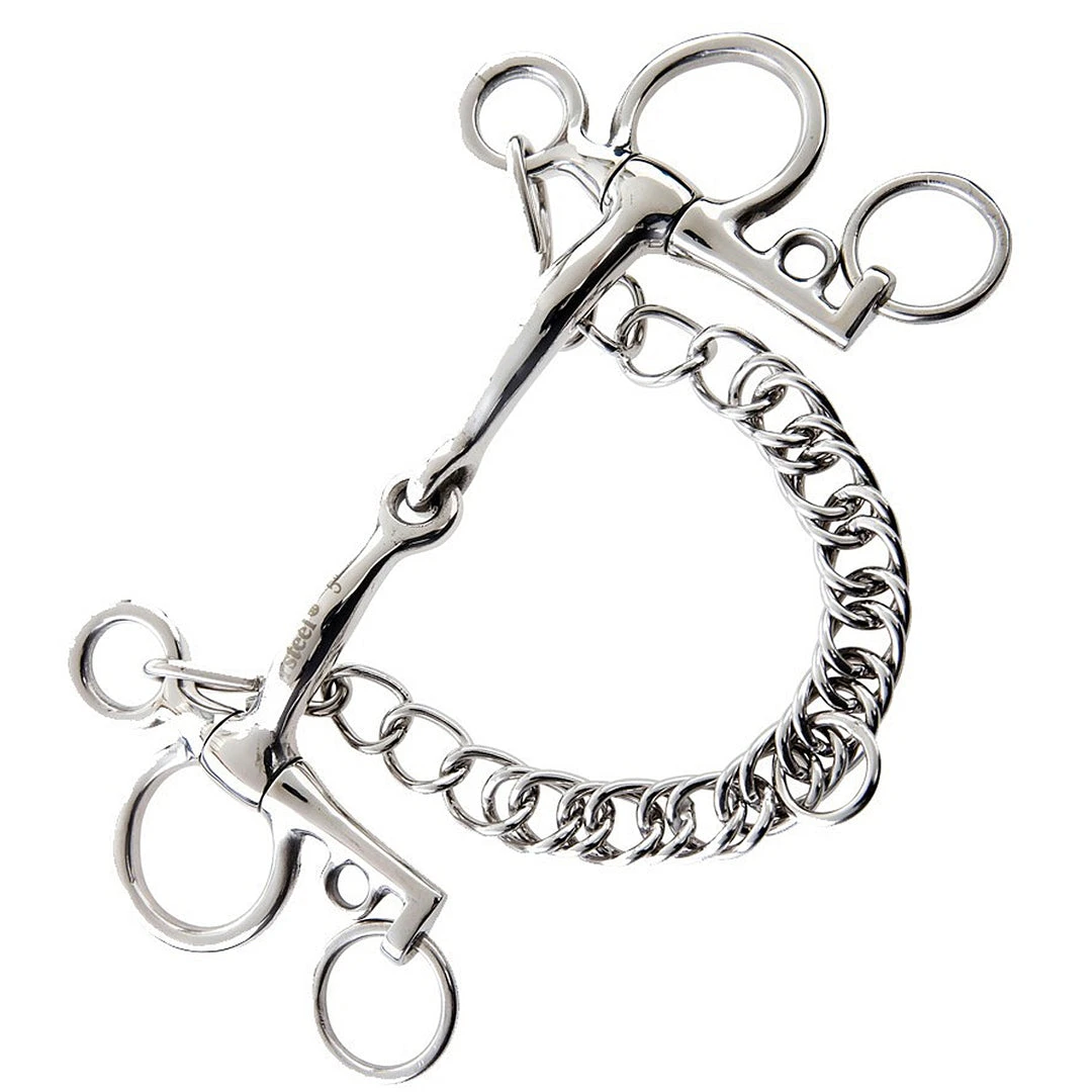 We love the JP Korsteel Stainless Steel Tom Thumb Pelham Bit because unlike a standard jointed snaffle’s nearly straight mouthpiece, JP bits have a curved shape that eliminates the interference that conventional bits can cause. All JP bits feature curved bars that prevent the bit from hitting the roof of the horse’s mouth and eliminate the nutcracker-like action that can pinch a horse’s tongue. Developed in conjunction with the world-renowned trainer and jockey John Patterson, JP bits provide the utmost comfort for your horse. The unique curved shape of the mouthpiece offers many advantages: