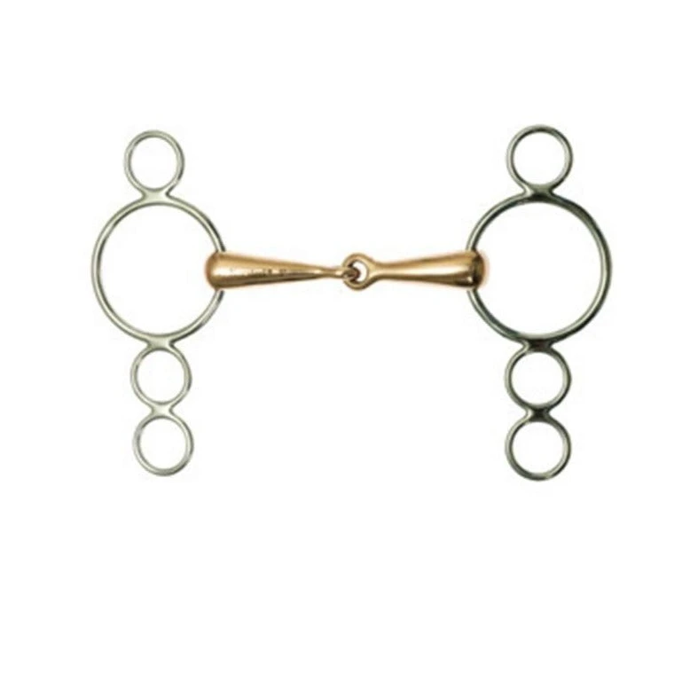 We love the Korsteel European Copper Mouth 3 Ring Elevator Gag Bit because it offers the same benefits as the stainless steel version, but is made with copper to encourage acceptance and salivation, promoting relaxation of the jaw. Â