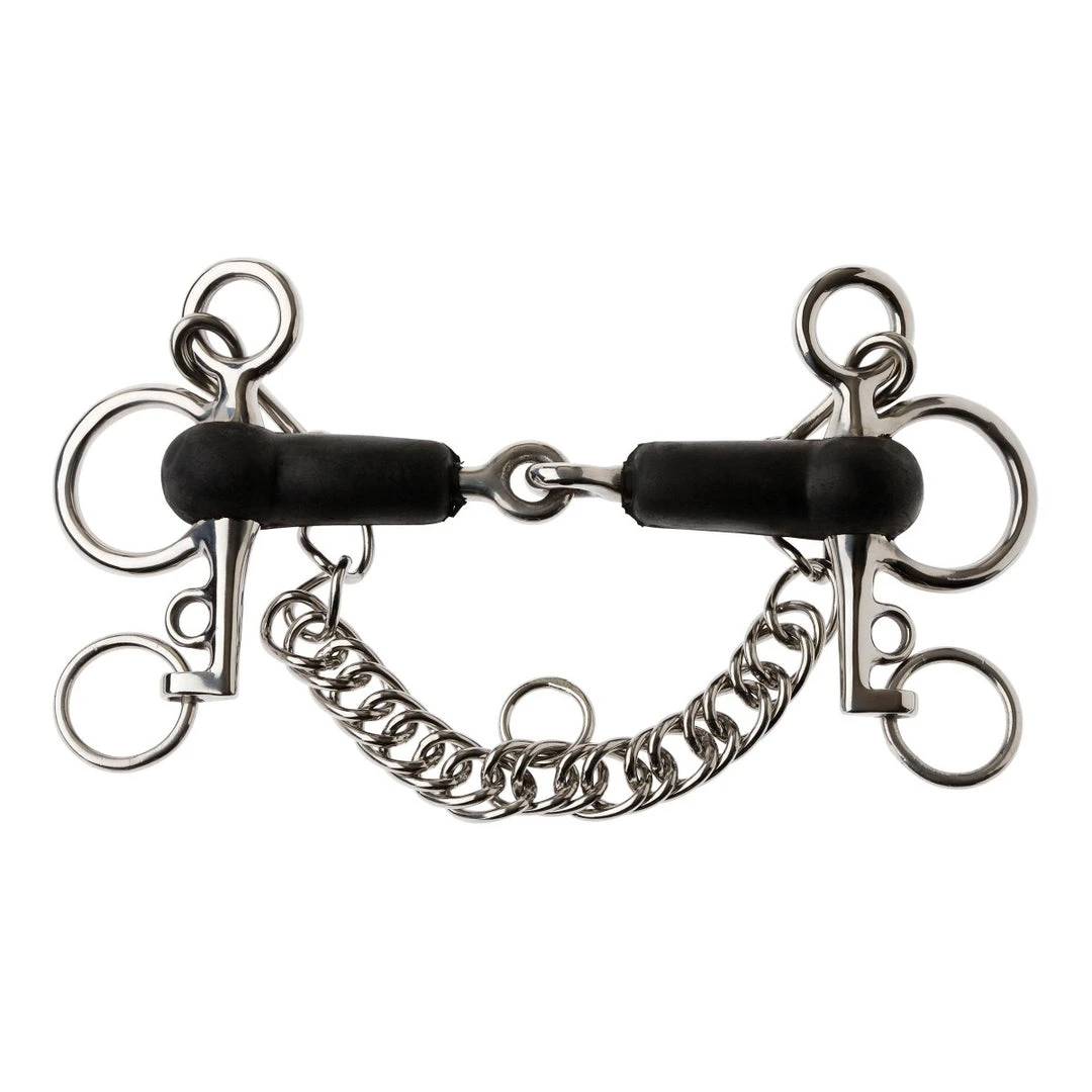 We love the Korsteel Rubber Jointed Tom Thumb Pelham Bit because the thicker mouthpiece is softer on the corners and the bars of the mouth and pressure created by the reins are spread over a larger surface area. Â